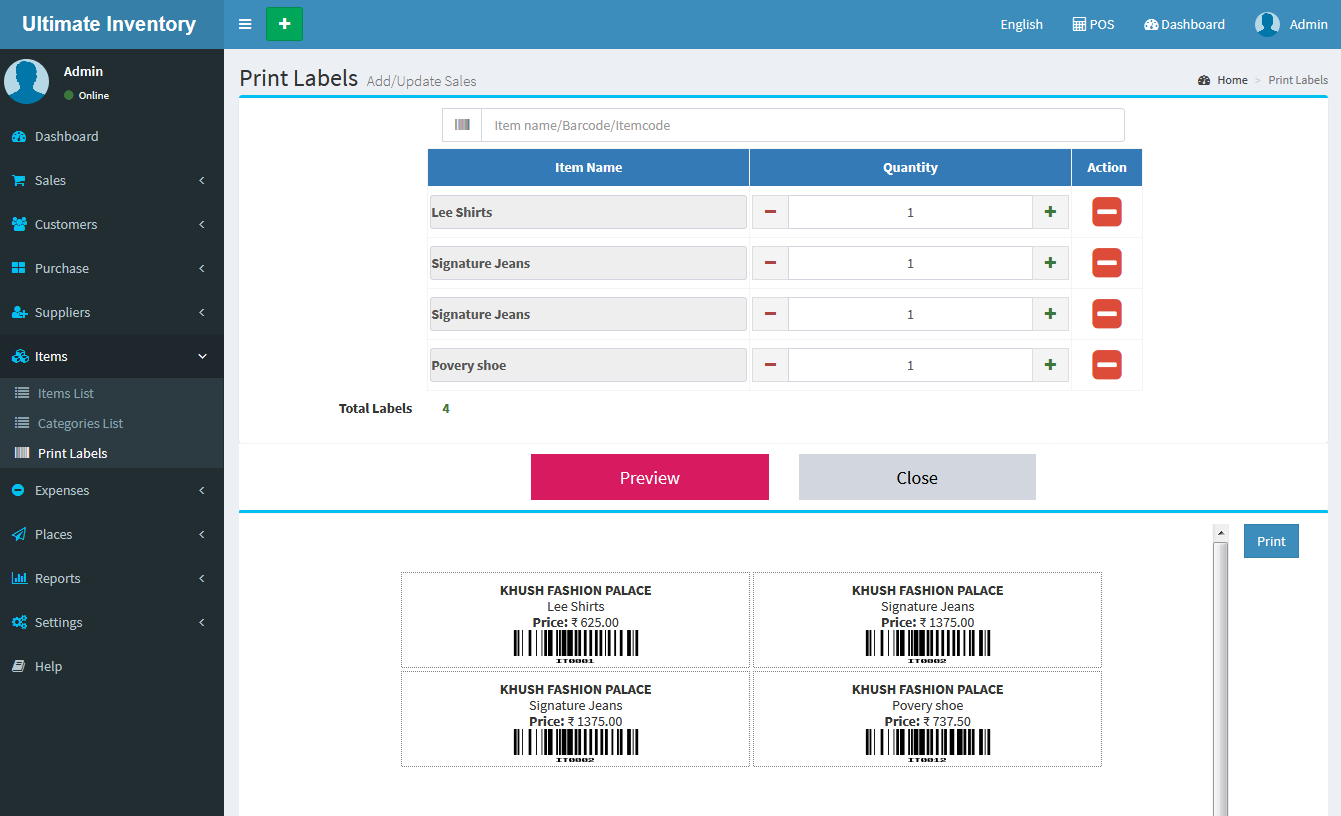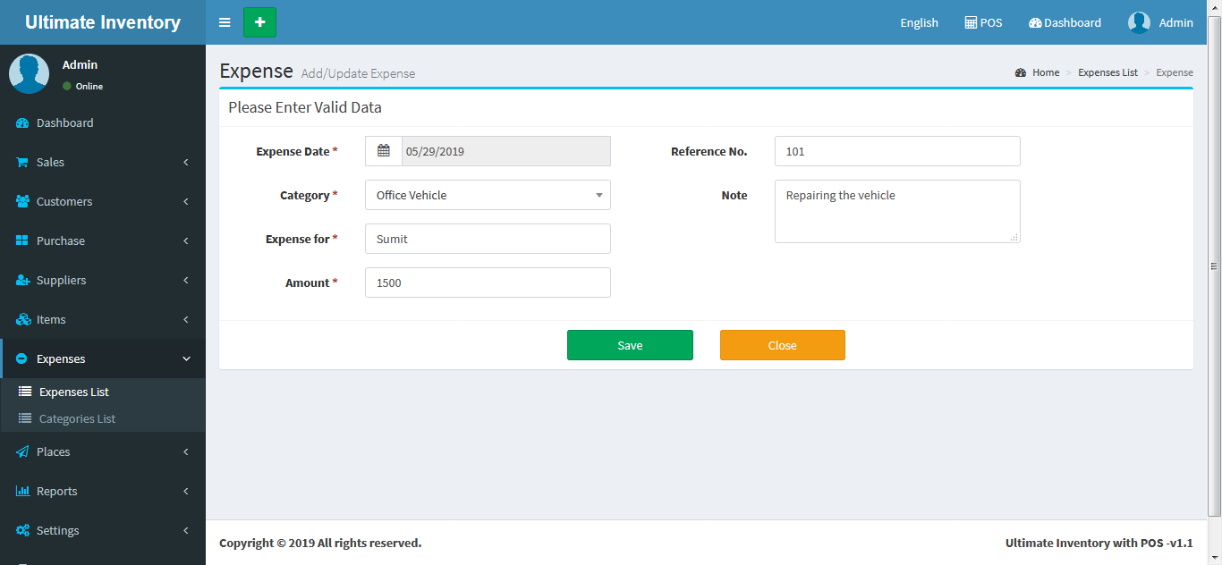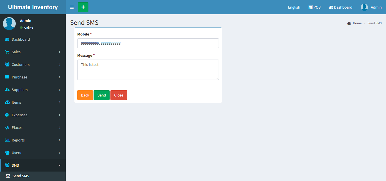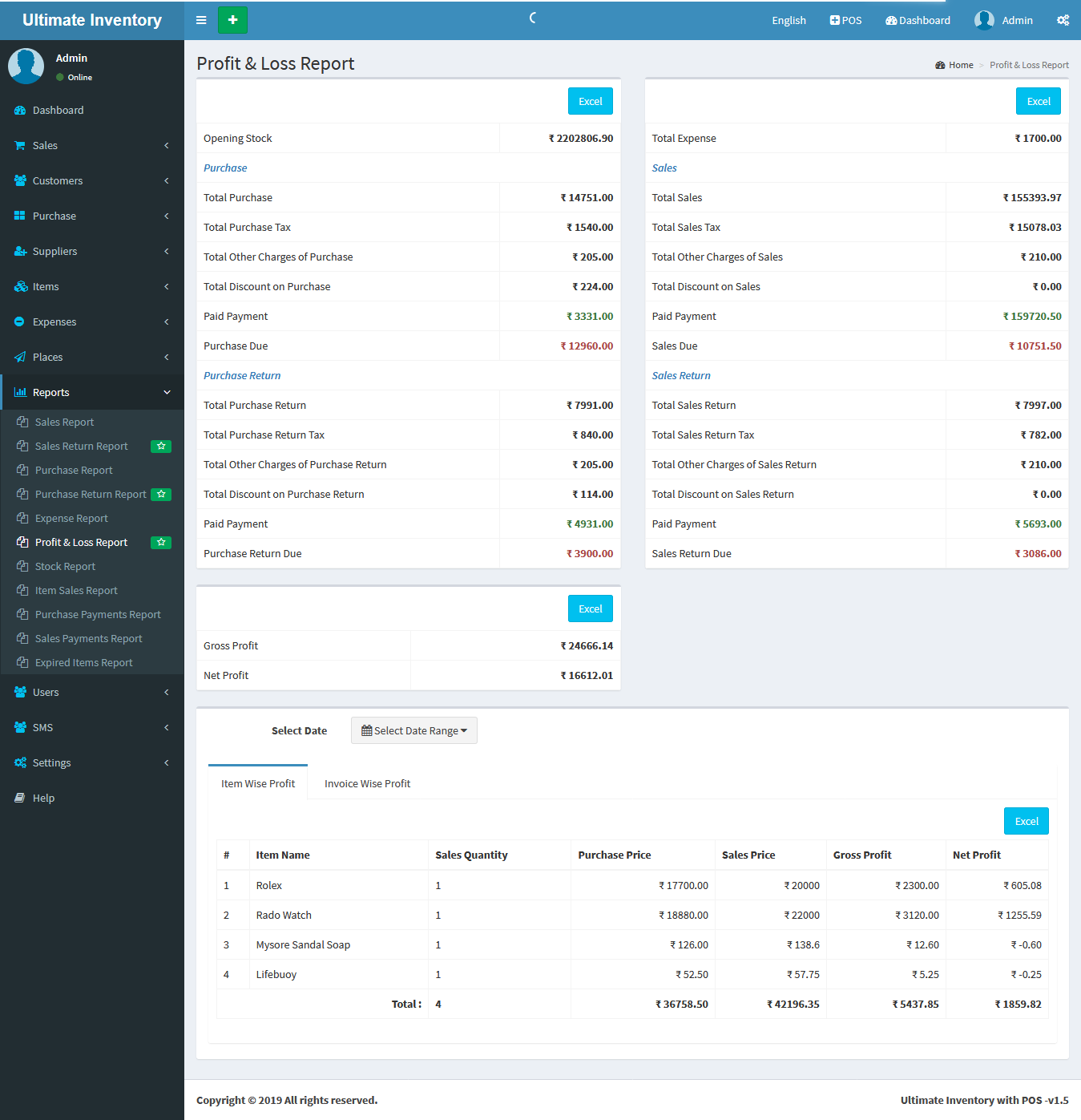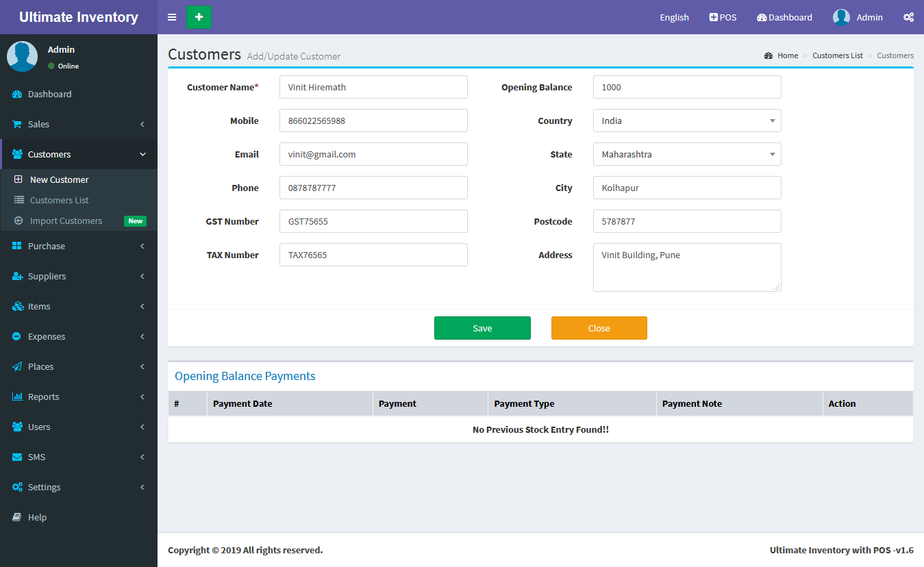 Inventory with POS is a web application software user can track Items & Stock Items, Manage Suppliers, Manage Customers, Items Categories, Sales, Purchase, Manage users and get all the reports which are require to your office and many more features.