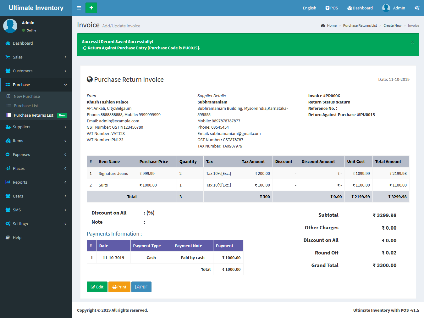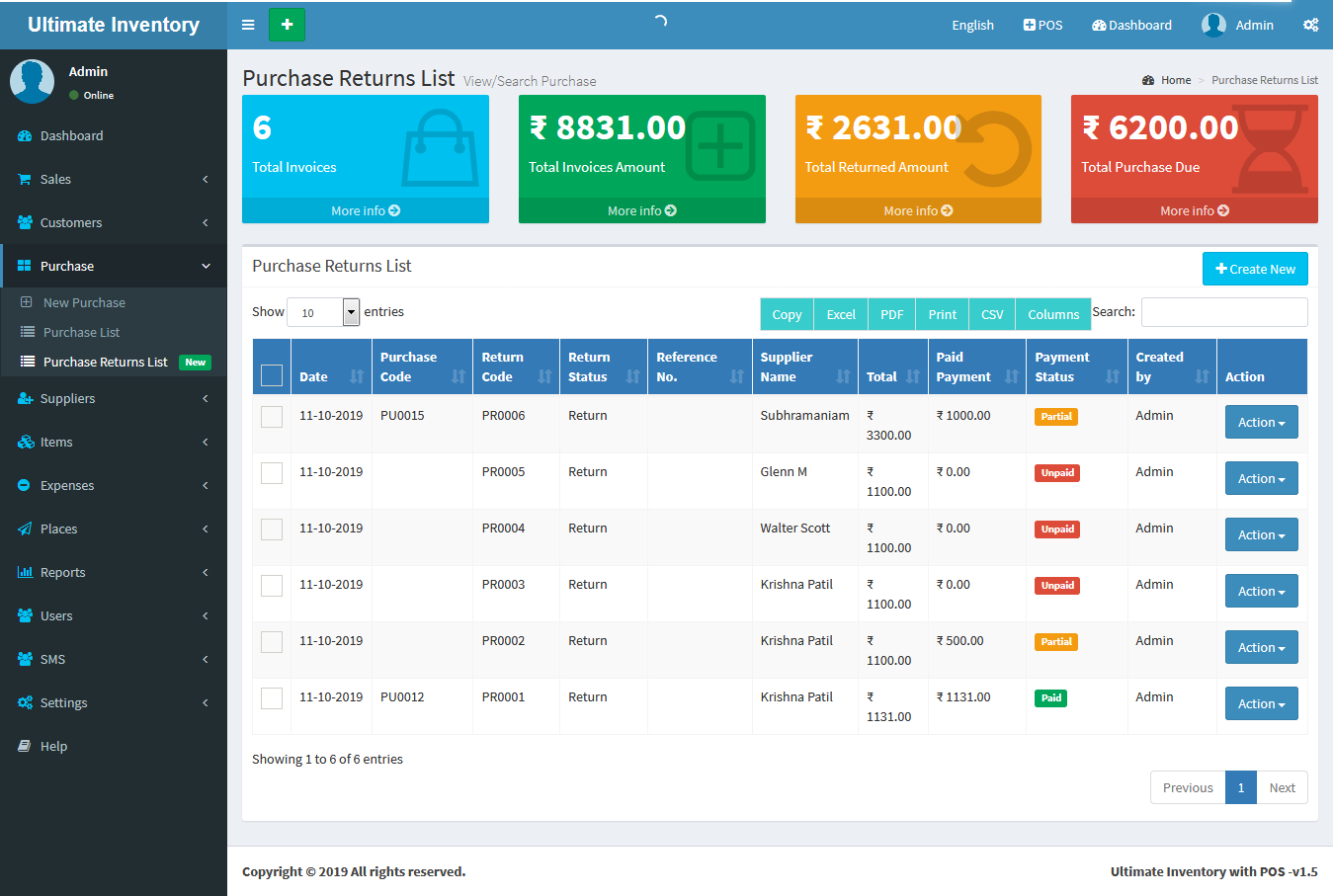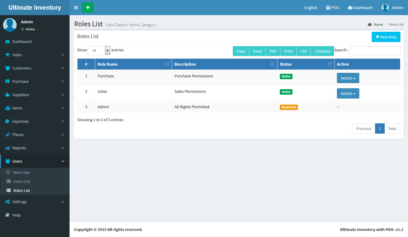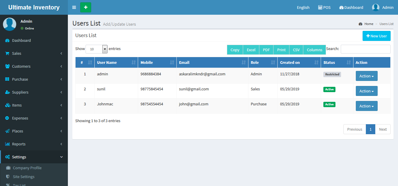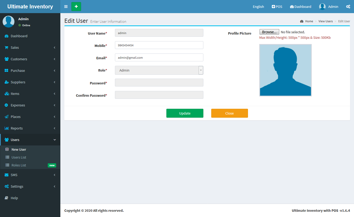 Inventory with POS is a web application software user can track Items & Stock Items, Manage Suppliers, Manage Customers, Items Categories, Sales, Purchase, Manage users and get all the reports which are require to your office and many more features.