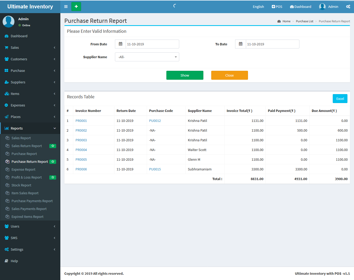 Report: Purchase Return Report :