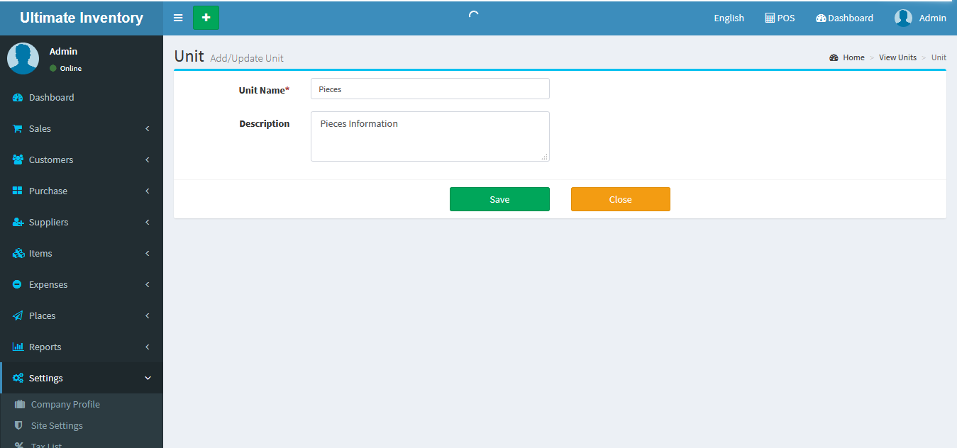 Unit Add: Add Unit Name & Description(Optional Field).