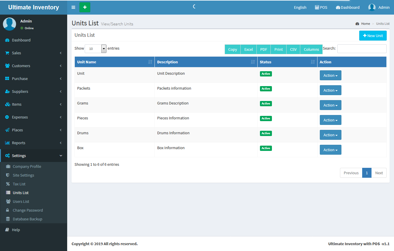 Units List: View Units List also user can edit & delete it.
