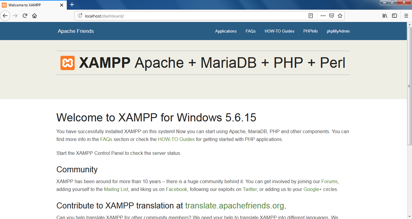• It will show XAMPP Welcome Page